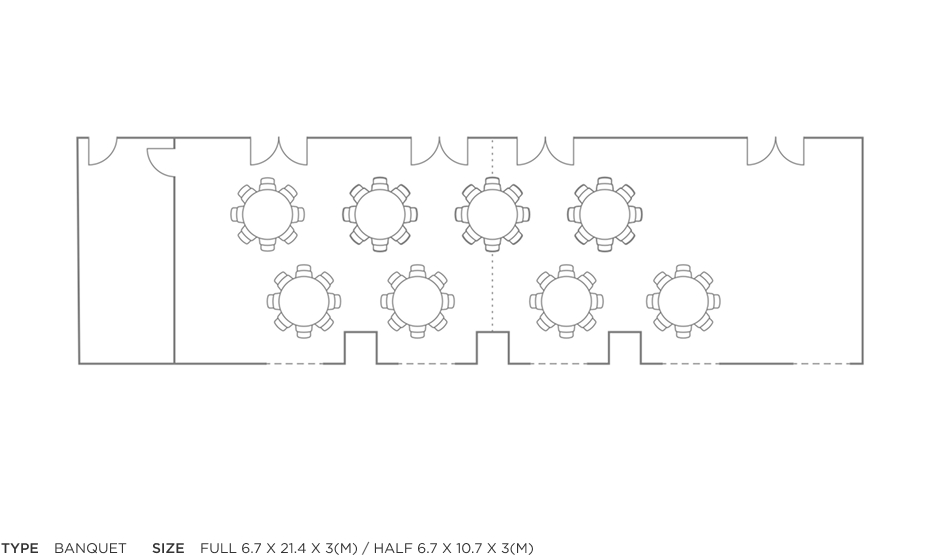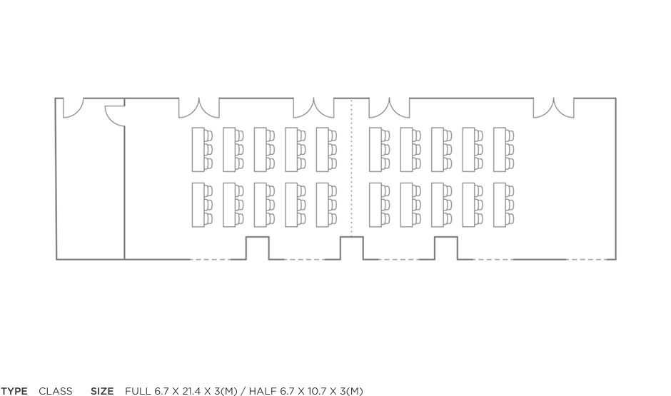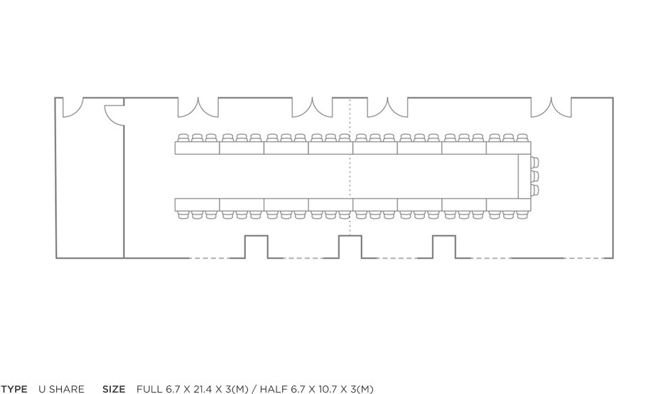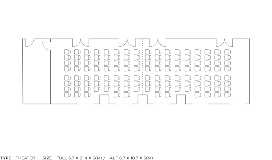 | Event Room (Half) | 6.7 x 10.7 x 3(m) | 30명 | 32명 | 60명 | 18명 | 18명 |